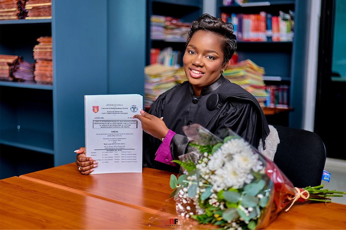 Félicitations à ROLIE LESSIA MOTOUNOU EKIA pour la soutenance réussie de sa thèse et l’obtention de son doctorat en Médecine à l’Université St. Christopher !
